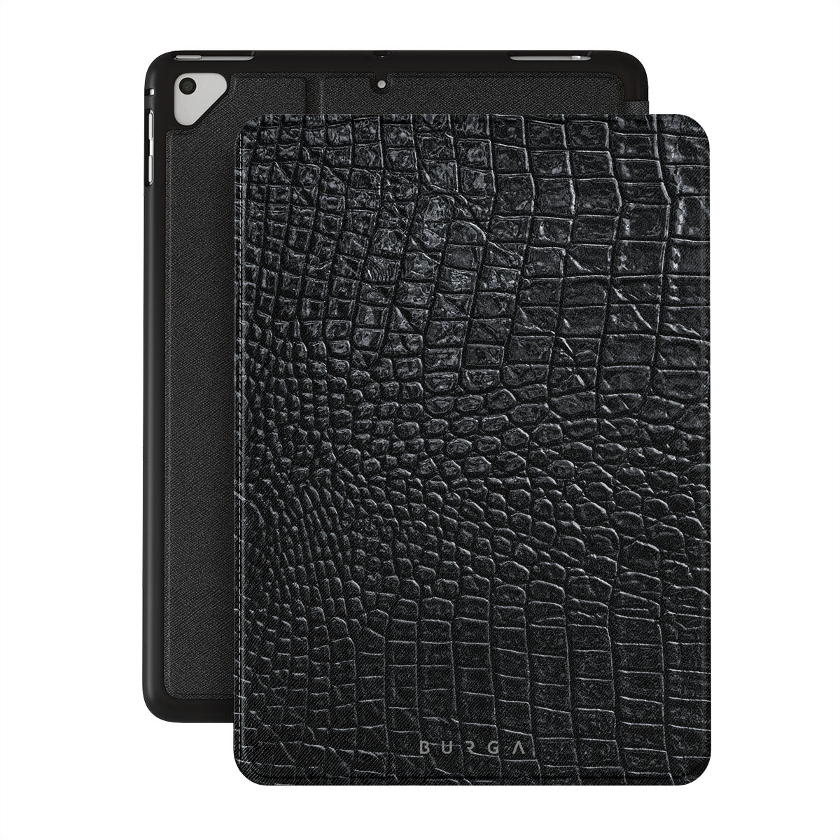 Our Reaper's Touch iPad 9.7 (6th/5th Gen) folio case cover features a classic snakeskin design in dark black. The dangerous animal print will add confidence and a touch of luxury to your style while transforming your iPad into a fashion accessory.