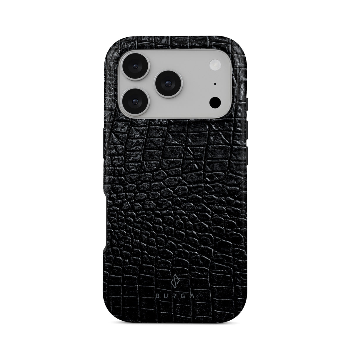 Our Reaper's Touch iPhone 17 Pro phone case cover features a classic snakeskin design in dark black. The dangerous animal print will add confidence and a touch of luxury to your style while transforming your phone into a fashion accessory.