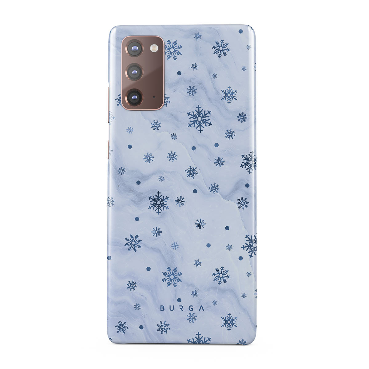 Our Ice Queen Samsung Galaxy Note 20 4G / 5G phone case combines the softest light blue marble design with a minimalistic snowflake pattern, this way creating the ever-mesmerizing effect of elegant snowflakes dance that only the magical winter days are known for. Keep your device looking elegant while keeping it safe and sound.