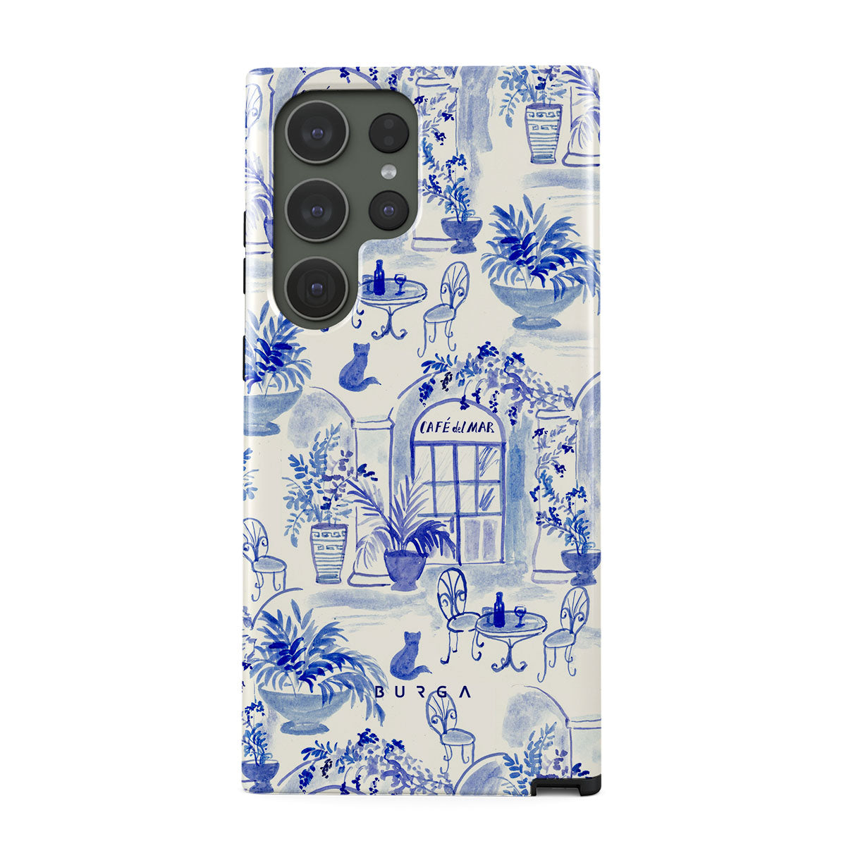 Close your eyes. You’re in a sun-faded café, sipping espresso with the ocean playing background music. This Samsung Galaxy S23 Ultra Case phone case design is soft and effortless. Someone pass me my oversized sunglasses, please. This design features: soft blues, coastal patterns, café elements, minimalist style, retro pattern, Mediterranean pattern.