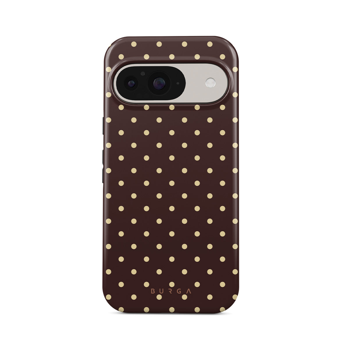 Playful yet polished, our Sorry Busy Google Pixel 10 Pro XL phone case design features a warm brown background sprinkled with delicate beige polka dots, blending charm with a professional edge. It's for those who keep it stylish, even when fully booked and thriving.