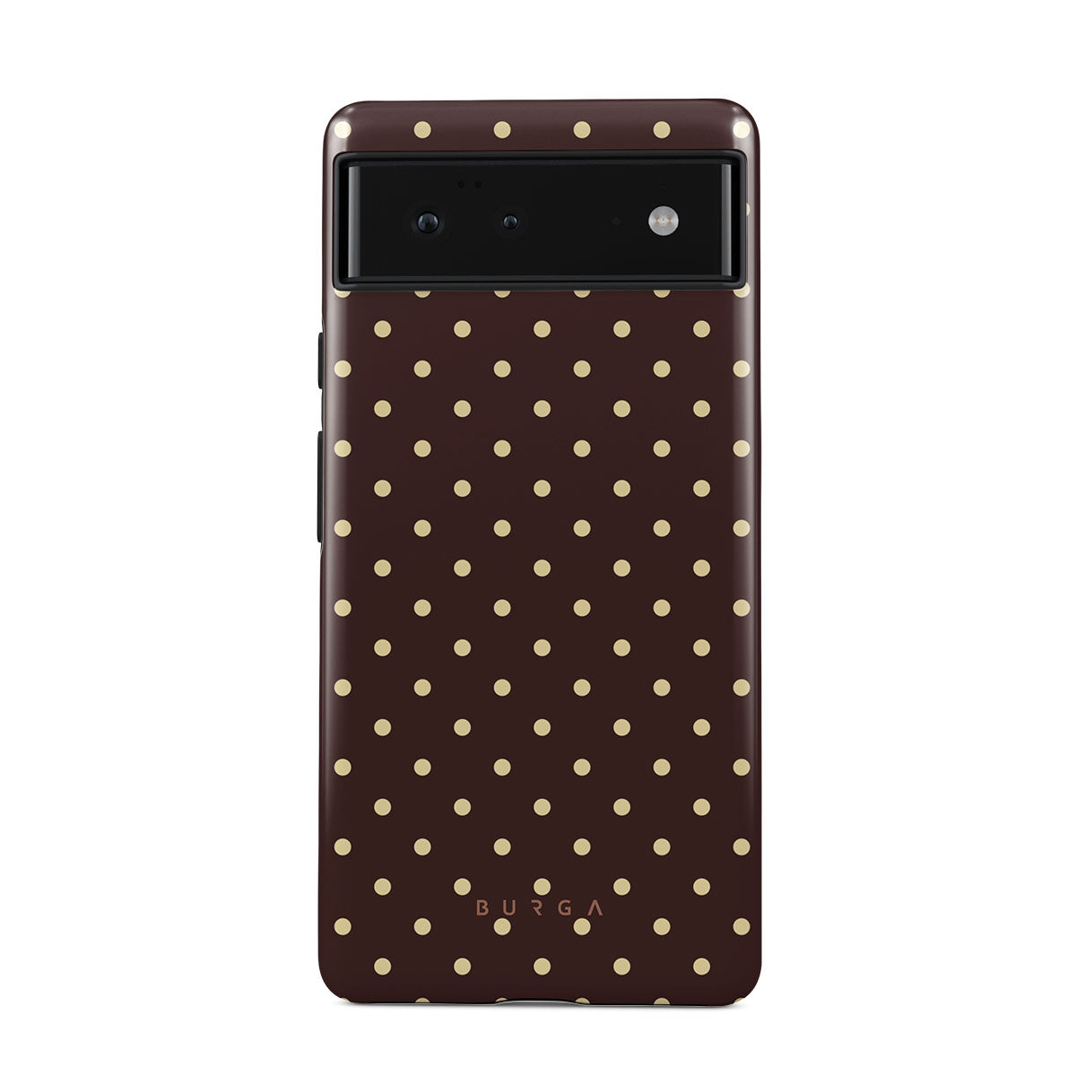 Playful yet polished, our Sorry Busy Google Pixel 6a phone case design features a warm brown background sprinkled with delicate beige polka dots, blending charm with a professional edge. It's for those who keep it stylish, even when fully booked and thriving.