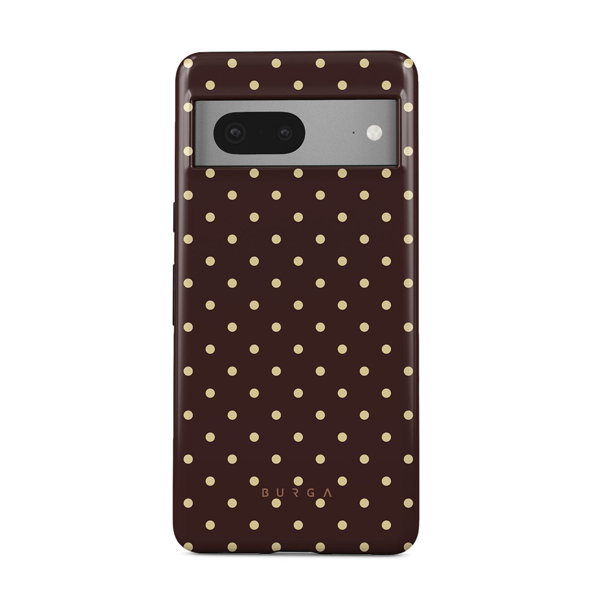 Playful yet polished, our Sorry Busy Google Pixel 7 phone case design features a warm brown background sprinkled with delicate beige polka dots, blending charm with a professional edge. It's for those who keep it stylish, even when fully booked and thriving.