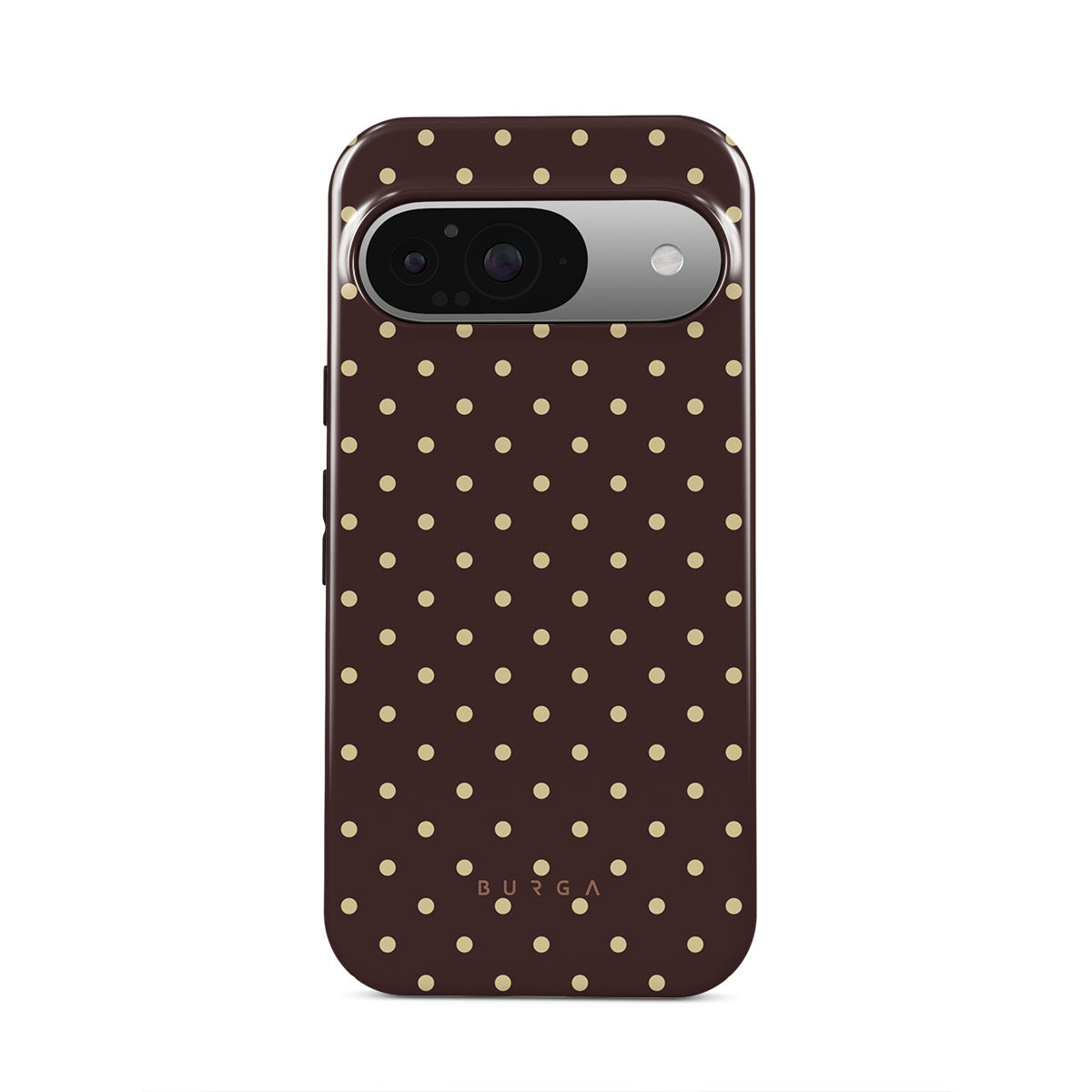Playful yet polished, our Sorry Busy Google Pixel 9 phone case design features a warm brown background sprinkled with delicate beige polka dots, blending charm with a professional edge. It's for those who keep it stylish, even when fully booked and thriving.