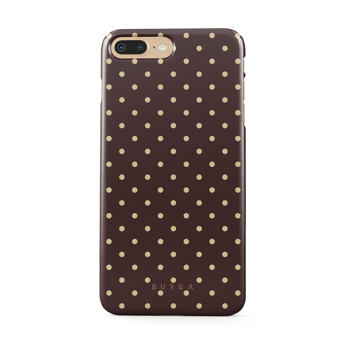 Playful yet polished, our Sorry Busy iPhone 7 Plus / 8 Plus phone case design features a warm brown background sprinkled with delicate beige polka dots, blending charm with a professional edge. It's for those who keep it stylish, even when fully booked and thriving.