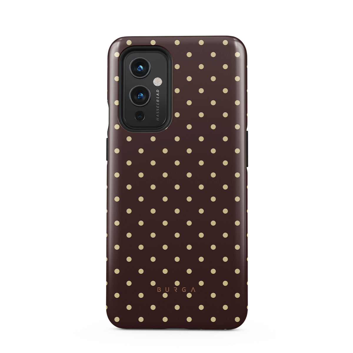 Playful yet polished, our Sorry Busy OnePlus 9 phone case design features a warm brown background sprinkled with delicate beige polka dots, blending charm with a professional edge. It's for those who keep it stylish, even when fully booked and thriving.