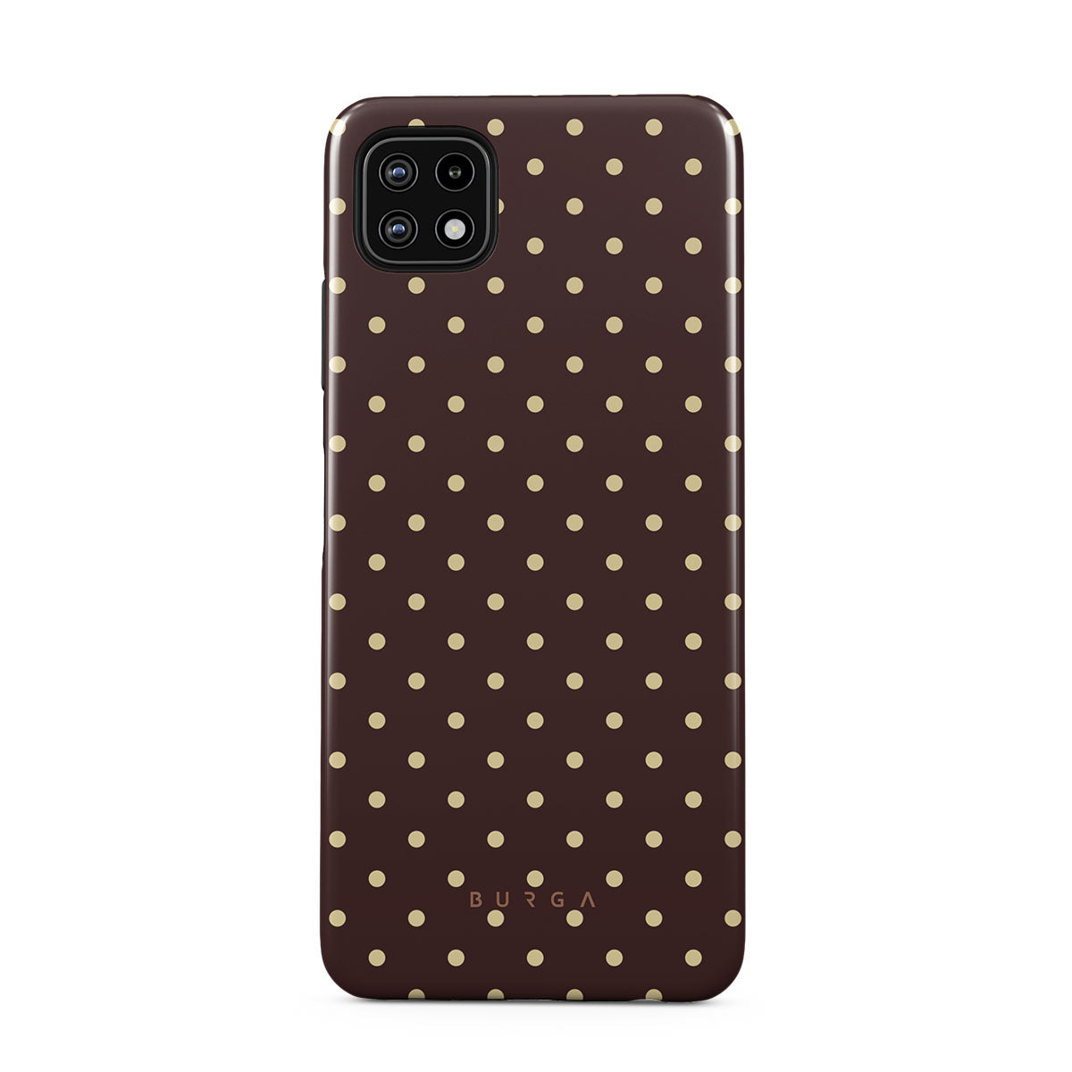 Playful yet polished, our Sorry Busy Samsung Galaxy A22 5G phone case design features a warm brown background sprinkled with delicate beige polka dots, blending charm with a professional edge. It's for those who keep it stylish, even when fully booked and thriving.