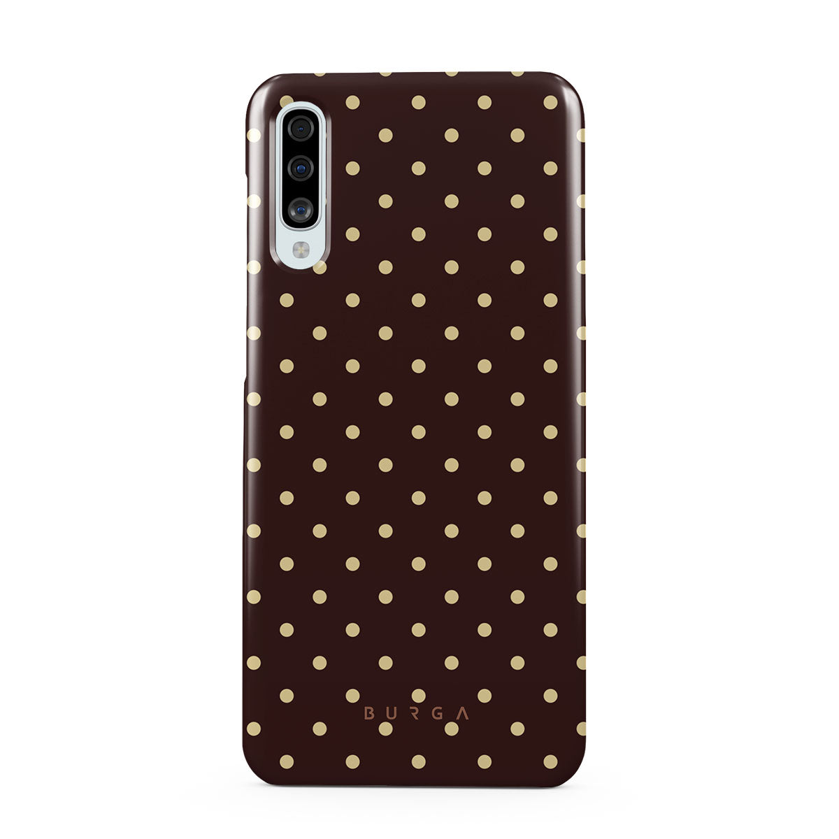 Playful yet polished, our Sorry Busy Samsung Galaxy A50 phone case design features a warm brown background sprinkled with delicate beige polka dots, blending charm with a professional edge. It's for those who keep it stylish, even when fully booked and thriving.
