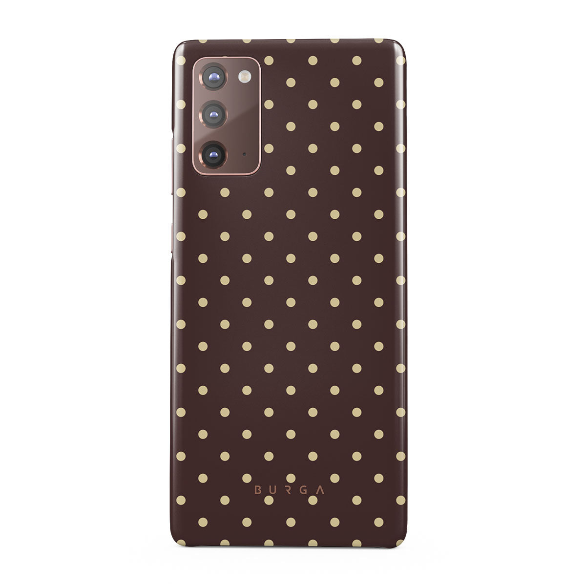 Playful yet polished, our Sorry Busy Samsung Galaxy Note 20 4G / 5G phone case design features a warm brown background sprinkled with delicate beige polka dots, blending charm with a professional edge. It's for those who keep it stylish, even when fully booked and thriving.