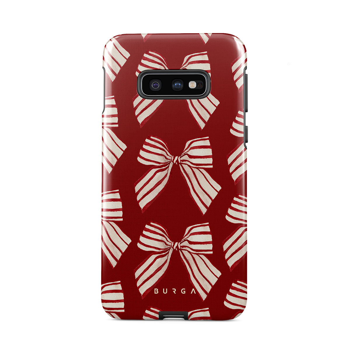 Ribbon-wrapped and ready to go. This Samsung Galaxy S10E phone casefeels like the moment right before tearing into the biggest gift under the tree. Our Special Delivery design captures the excitement of unwrapping holiday surprises. Every glance is a reminder that the best gifts are the ones wrapped with love.