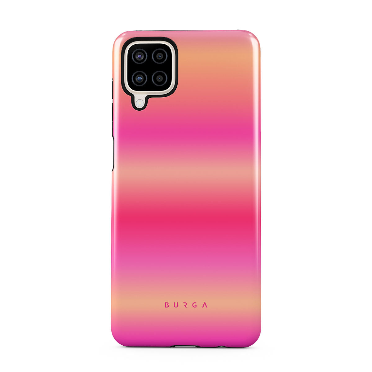 Introducing SPF100—a Samsung Galaxy A12 4G phone case that's as hot as a summer's day. Featuring a gradient of vivid pinks and warm oranges, this design radiates bold, vibrant energy, reminiscent of sun-kissed skin and tropical getaways.