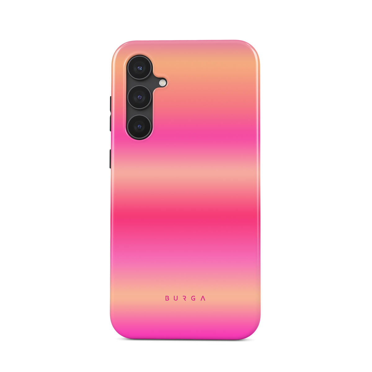 Introducing SPF100—a Samsung Galaxy S23 FE phone case that's as hot as a summer's day. Featuring a gradient of vivid pinks and warm oranges, this design radiates bold, vibrant energy, reminiscent of sun-kissed skin and tropical getaways.