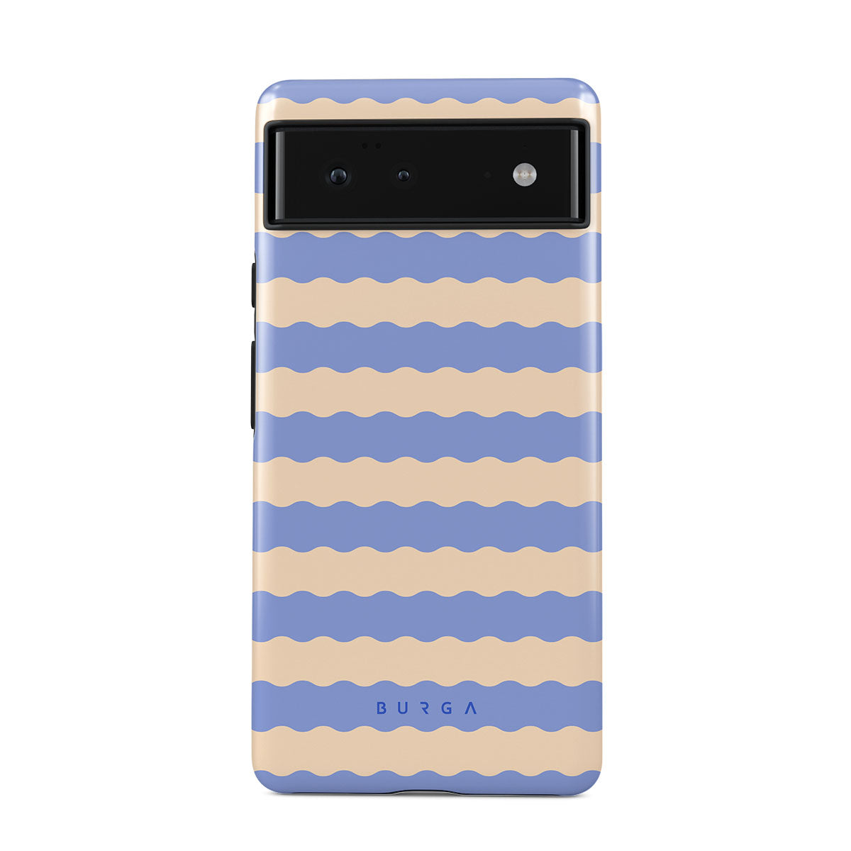 Dive into the cool, refreshing style of our Splash design–a dynamic Google Pixel 6 phone case featuring playful, wavy stripes of serene ocean blue and soft sandy beige. Perfect for those who love to make a splash with their accessories.