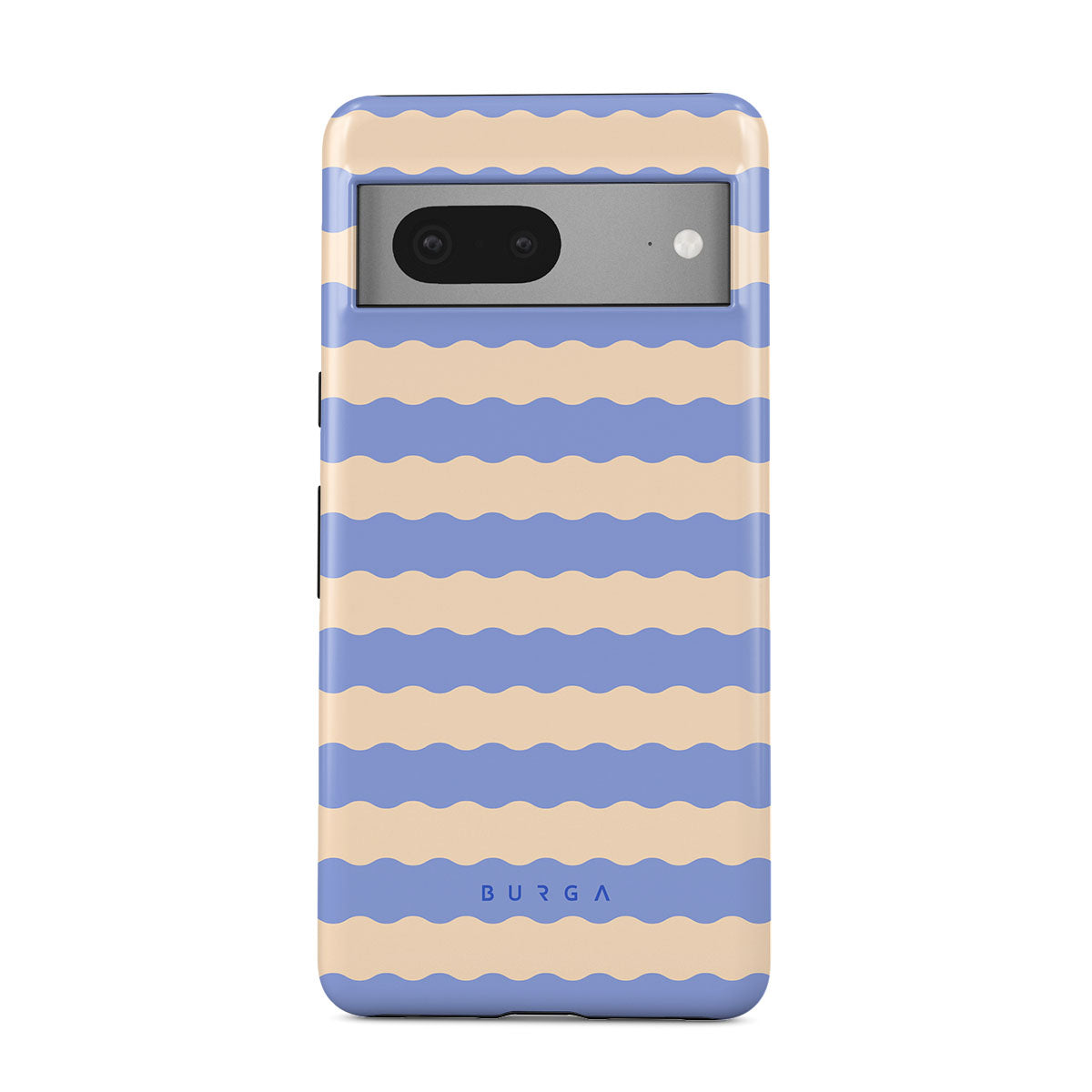 Dive into the cool, refreshing style of our Splash design–a dynamic Google Pixel 7 phone case featuring playful, wavy stripes of serene ocean blue and soft sandy beige. Perfect for those who love to make a splash with their accessories.