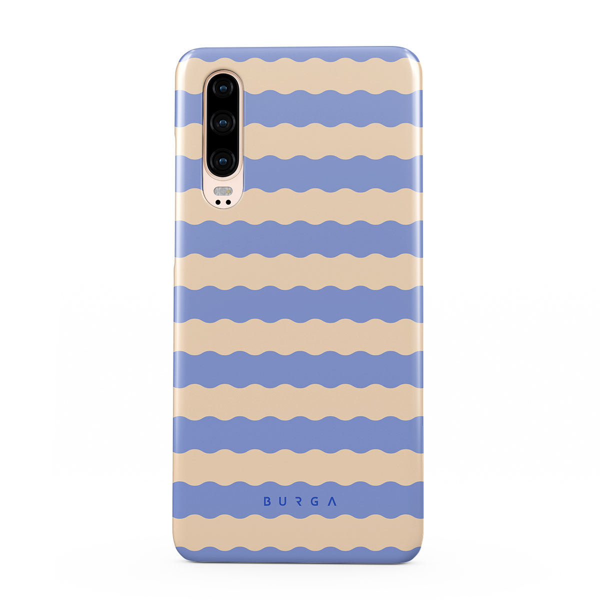 Dive into the cool, refreshing style of our Splash design–a dynamic Huawei P30 phone case featuring playful, wavy stripes of serene ocean blue and soft sandy beige. Perfect for those who love to make a splash with their accessories.