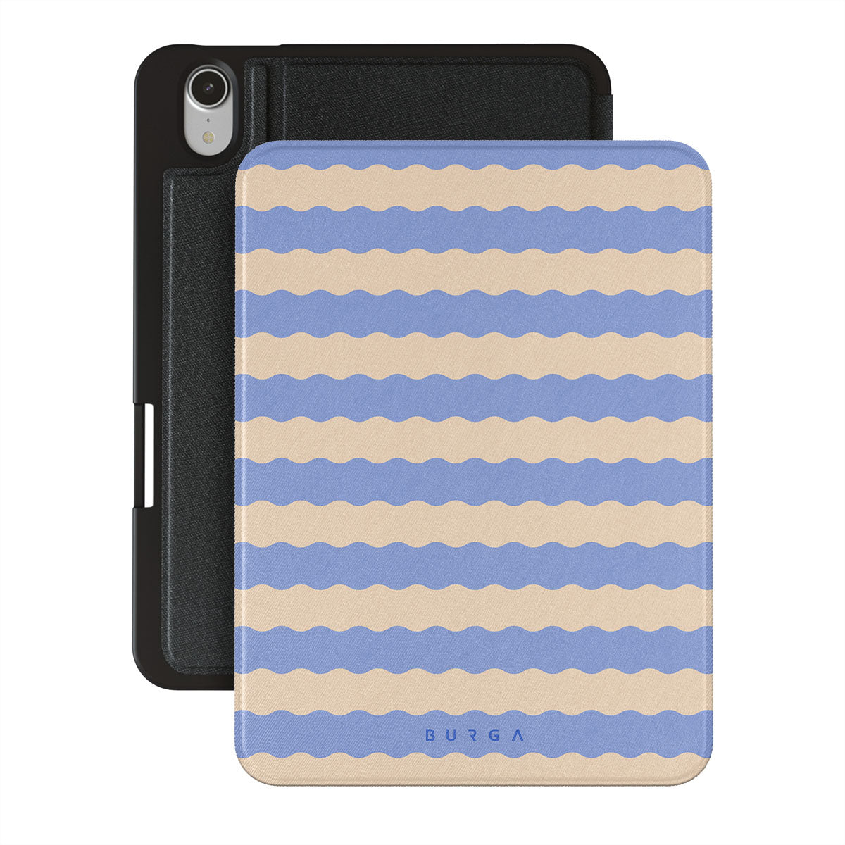 Dive into the cool, refreshing style of our Splash design–a dynamic iPad Mini 8.3 (A17 Pro/6th Gen) 2021 folio case featuring playful, wavy stripes of serene ocean blue and soft sandy beige. Perfect for those who love to make a splash with their accessories.