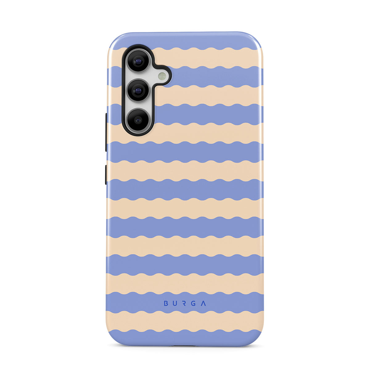 Dive into the cool, refreshing style of our Splash design–a dynamic Samsung Galaxy A54 phone case featuring playful, wavy stripes of serene ocean blue and soft sandy beige. Perfect for those who love to make a splash with their accessories.