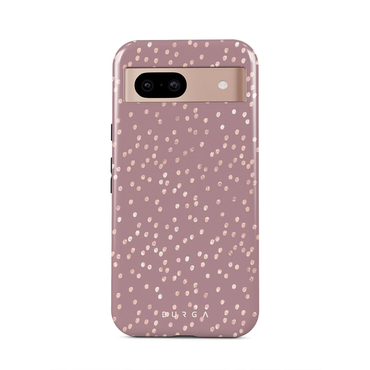 Trendy mauve color as a background for the gold-colored spots creates true beauty. Make your Google Pixel 8a stand out with our protective and pretty Hot Cocoa phone case. The spotted pattern adds a touch of luxury to your phone, while the case's hard-shell nature offers much-needed protection.