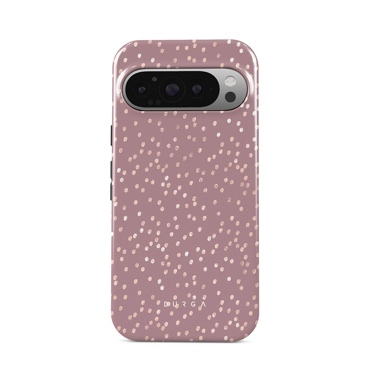 Trendy mauve color as a background for the gold-colored spots creates true beauty. Make your Google Pixel 9 Pro XL stand out with our protective and pretty Hot Cocoa phone case. The spotted pattern adds a touch of luxury to your phone, while the case's hard-shell nature offers much-needed protection.