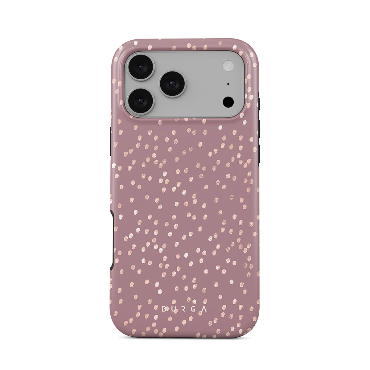 Trendy mauve color as a background for the gold-colored spots creates true beauty. Make your iPhone 17 Pro Max stand out with our protective and pretty Hot Cocoa phone case. The spotted pattern adds a touch of luxury to your phone, while the case's hard-shell nature offers much-needed protection.
