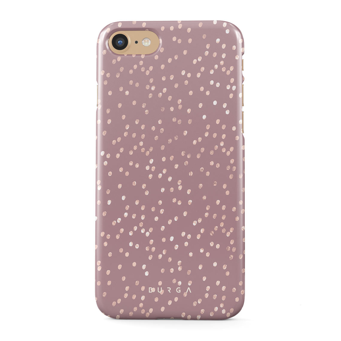 Trendy mauve color as a background for the gold-colored spots creates true beauty. Make your iPhone SE (2020) stand out with our protective and pretty Hot Cocoa phone case. The spotted pattern adds a touch of luxury to your phone, while the case's hard-shell nature offers much-needed protection.