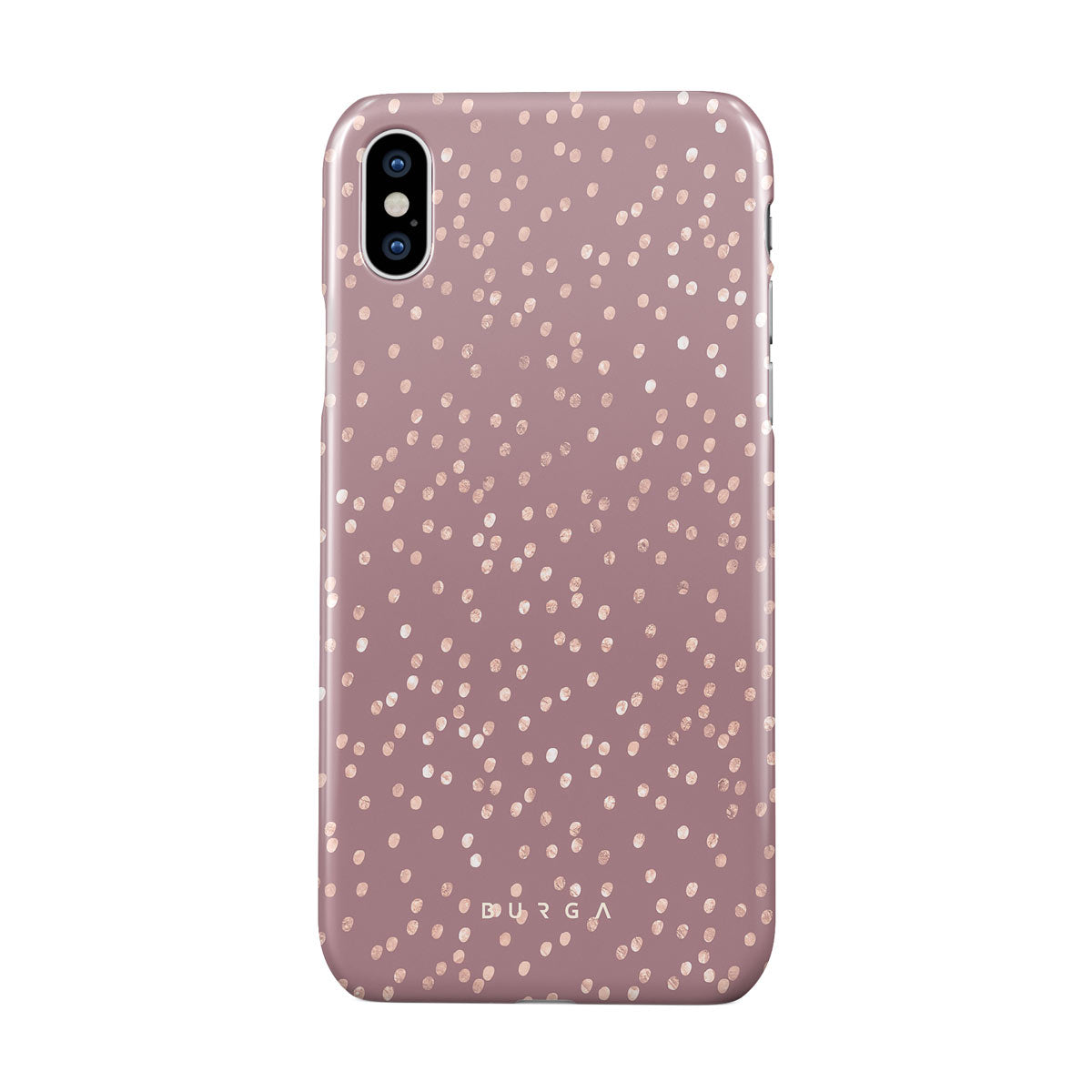 Trendy mauve color as a background for the gold-colored spots creates true beauty. Make your iPhone X / XS stand out with our protective and pretty Hot Cocoa phone case. The spotted pattern adds a touch of luxury to your phone, while the case's hard-shell nature offers much-needed protection.