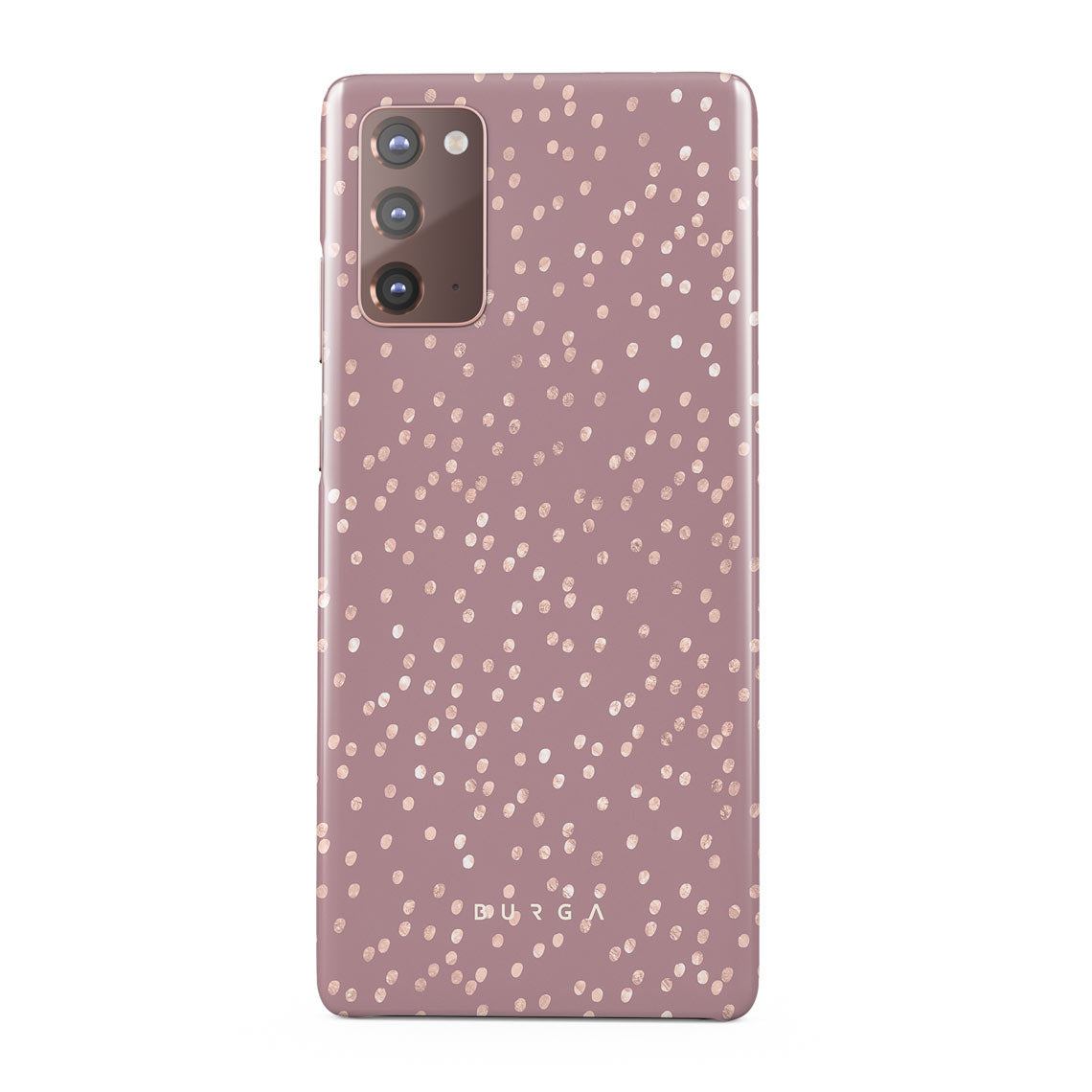Trendy mauve color as a background for the gold-colored spots creates true beauty. Make your Samsung Galaxy Note 20 4G / 5G stand out with our protective and pretty Hot Cocoa phone case. The spotted pattern adds a touch of luxury to your phone, while the case's hard-shell nature offers much-needed protection.