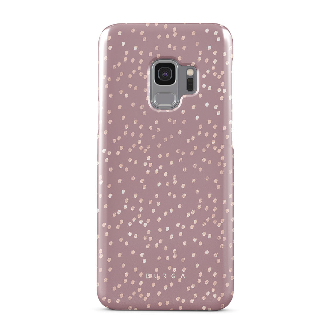 Trendy mauve color as a background for the gold-colored spots creates true beauty. Make your Samsung Galaxy S9 stand out with our protective and pretty Hot Cocoa phone case. The spotted pattern adds a touch of luxury to your phone, while the case's hard-shell nature offers much-needed protection.