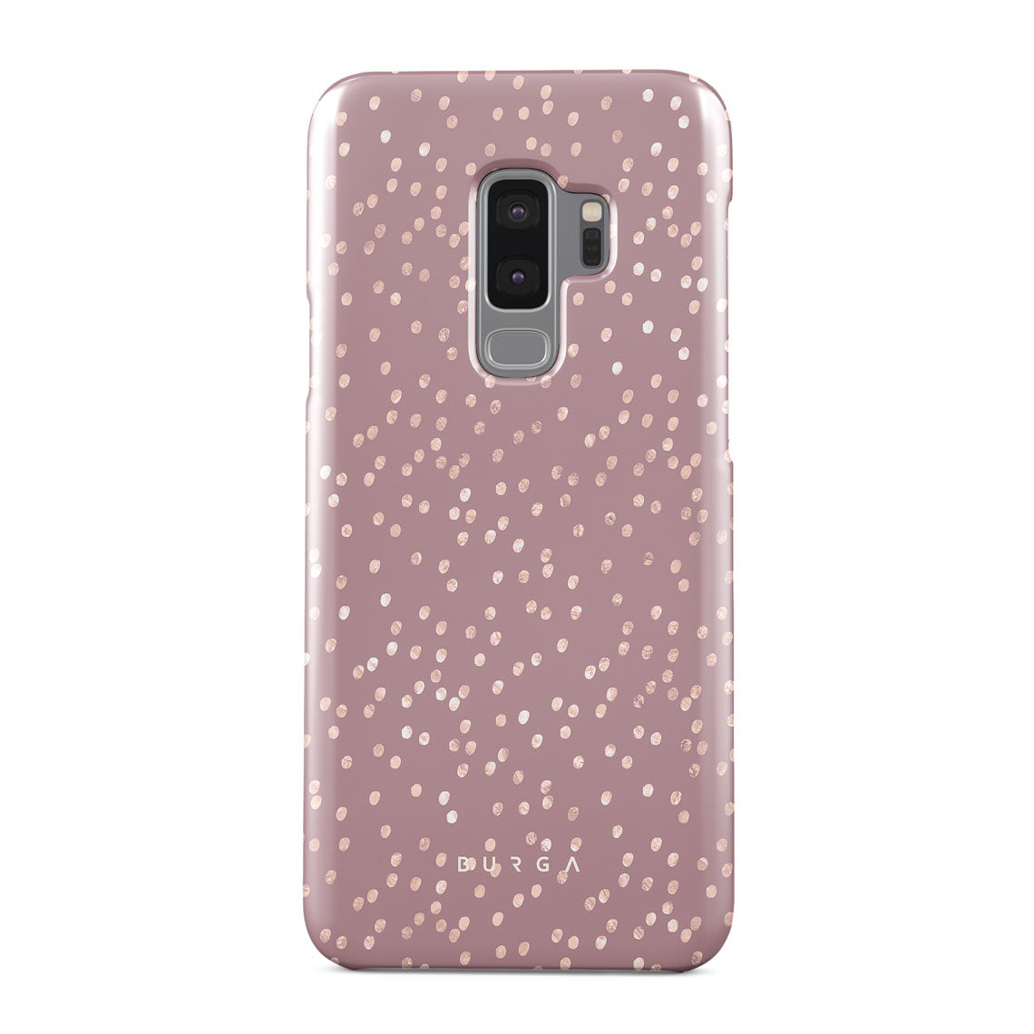 Trendy mauve color as a background for the gold-colored spots creates true beauty. Make your Samsung Galaxy S9 Plus stand out with our protective and pretty Hot Cocoa phone case. The spotted pattern adds a touch of luxury to your phone, while the case's hard-shell nature offers much-needed protection.