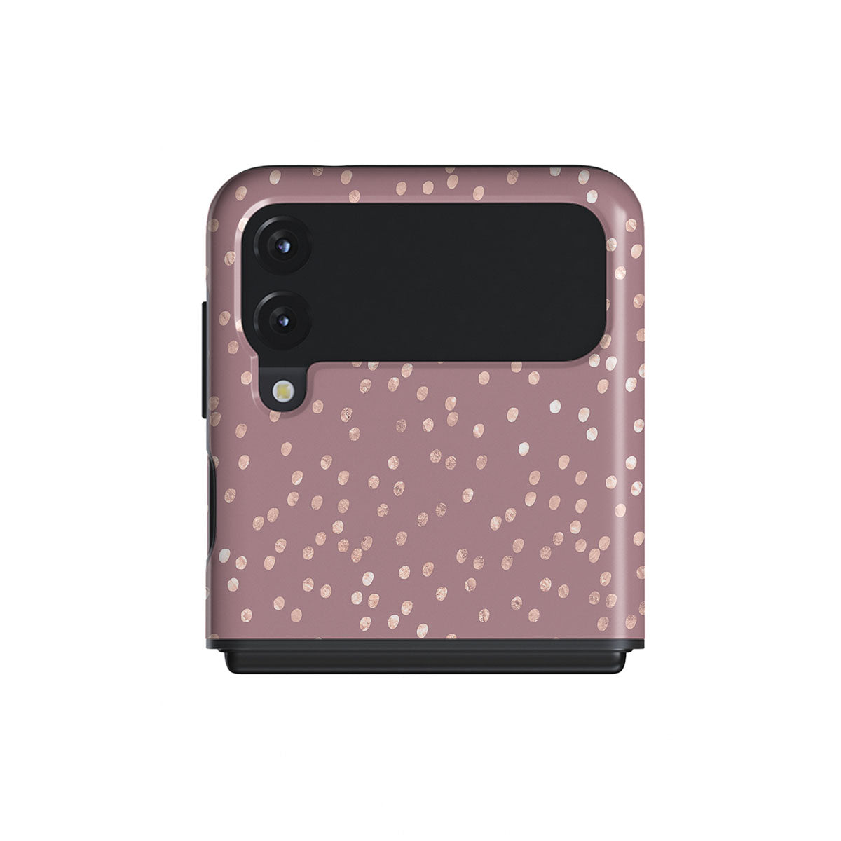 Trendy mauve color as a background for the gold-colored spots creates true beauty. Make your Samsung Galaxy Z Flip 3 stand out with our protective and pretty Hot Cocoa phone case. The spotted pattern adds a touch of luxury to your phone, while the case's hard-shell nature offers much-needed protection.