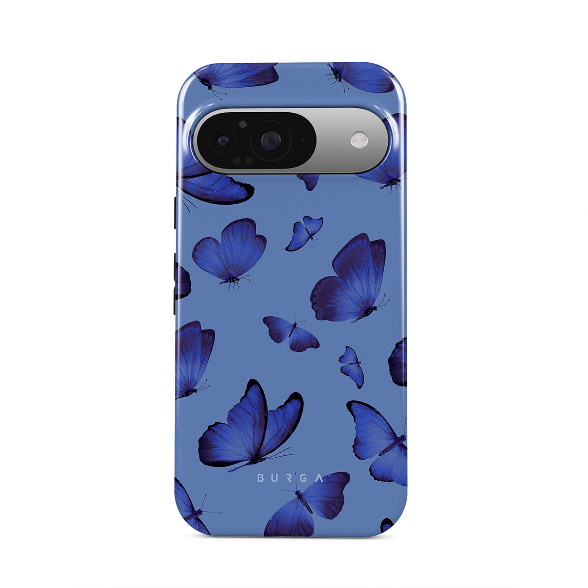 Bright blue butterflies dance across a sky-blue expanse, a visual representation of freedom and transformation. Our Spring Court Google Pixel 9 phone case design symbolizes the soul's eternal dance with change, each flutter a step towards becoming who we are meant to be.