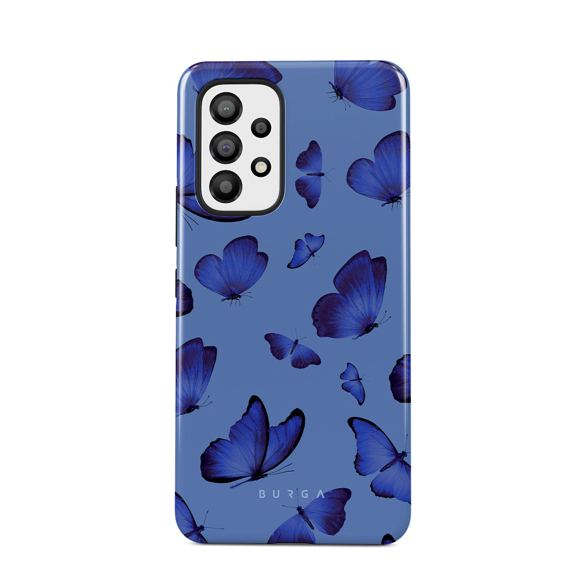 Bright blue butterflies dance across a sky-blue expanse, a visual representation of freedom and transformation. Our Spring Court Samsung Galaxy A23 4G / 5G phone case design symbolizes the soul's eternal dance with change, each flutter a step towards becoming who we are meant to be.