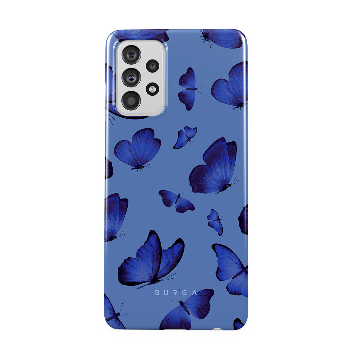 Bright blue butterflies dance across a sky-blue expanse, a visual representation of freedom and transformation. Our Spring Court Samsung Galaxy A72 4G / 5G phone case design symbolizes the soul's eternal dance with change, each flutter a step towards becoming who we are meant to be.