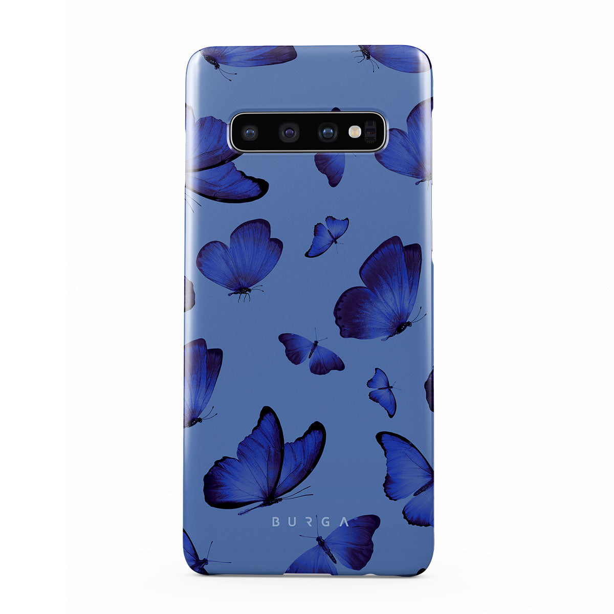 Bright blue butterflies dance across a sky-blue expanse, a visual representation of freedom and transformation. Our Spring Court Samsung Galaxy S10 Plus phone case design symbolizes the soul's eternal dance with change, each flutter a step towards becoming who we are meant to be.