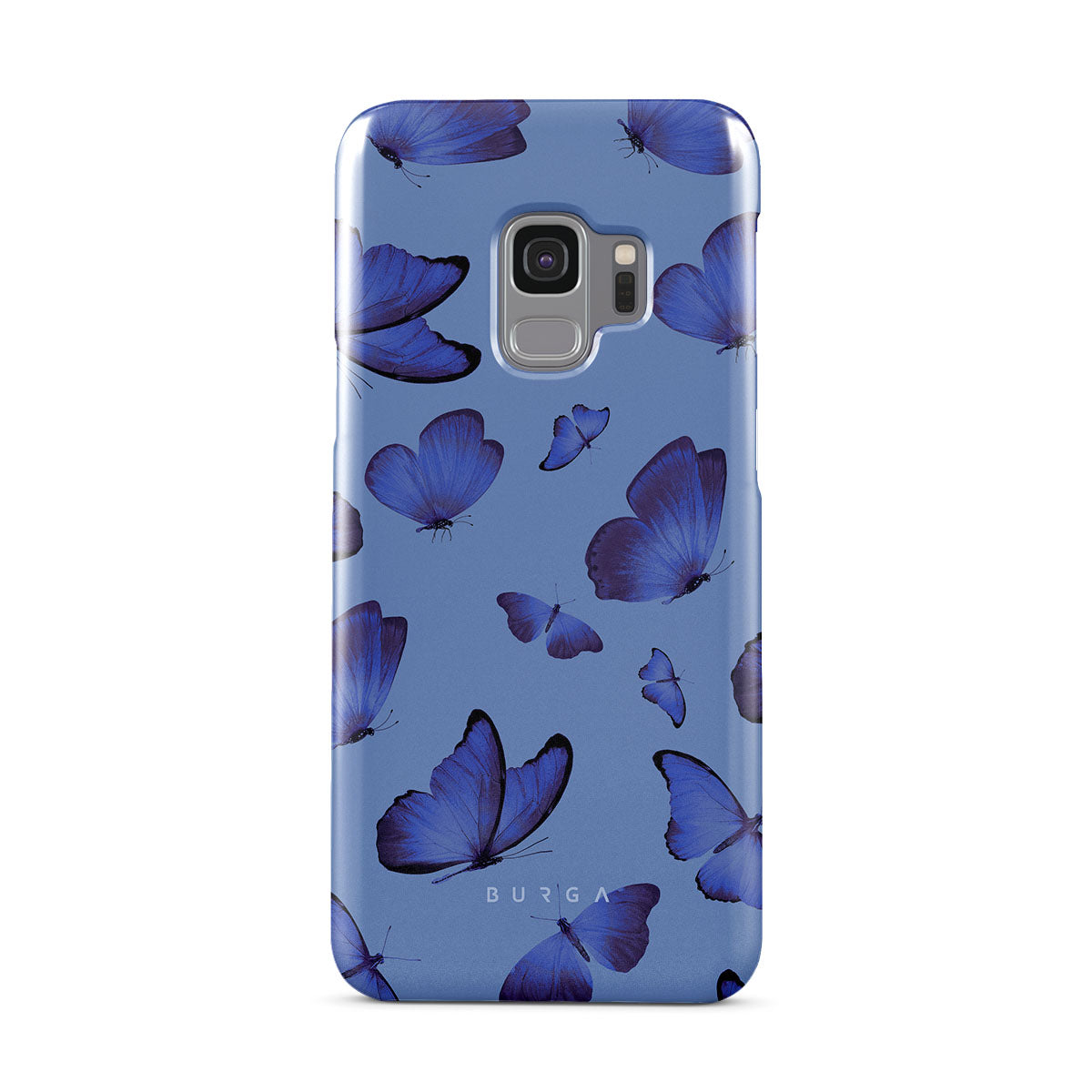 Bright blue butterflies dance across a sky-blue expanse, a visual representation of freedom and transformation. Our Spring Court Samsung Galaxy S9 phone case design symbolizes the soul's eternal dance with change, each flutter a step towards becoming who we are meant to be.