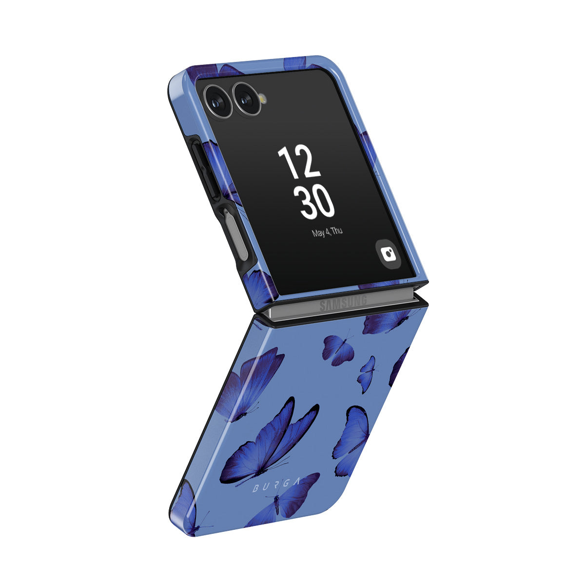 Bright blue butterflies dance across a sky-blue expanse, a visual representation of freedom and transformation. Our Spring Court Samsung Galaxy Z Flip 7 phone case design symbolizes the soul's eternal dance with change, each flutter a step towards becoming who we are meant to be.