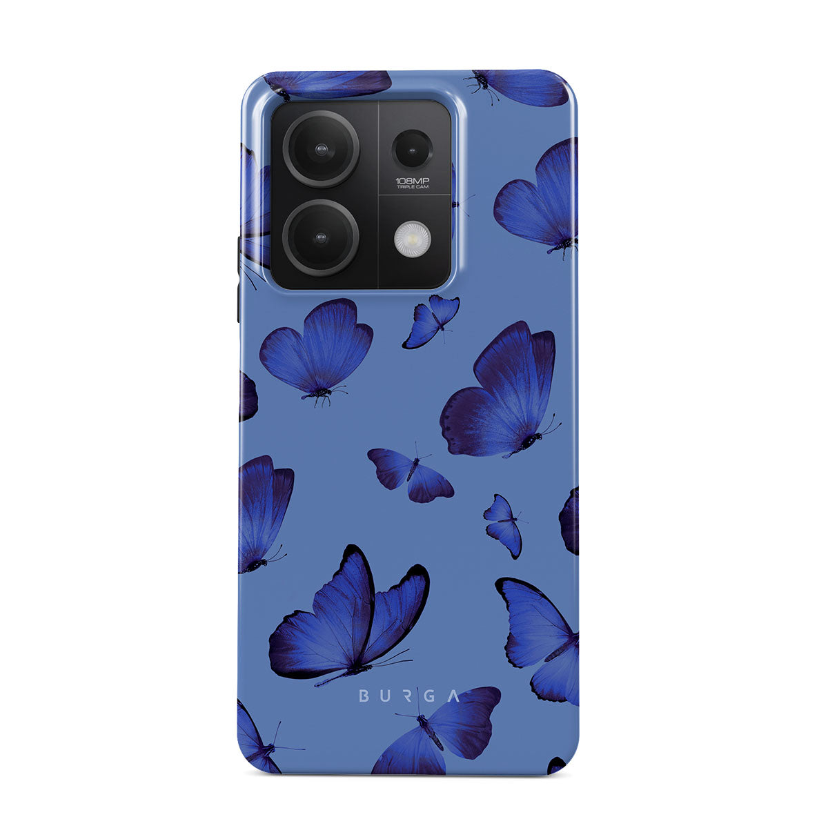 Bright blue butterflies dance across a sky-blue expanse, a visual representation of freedom and transformation. Our Spring Court Xiaomi Redmi Note 13 5G phone case design symbolizes the soul's eternal dance with change, each flutter a step towards becoming who we are meant to be.