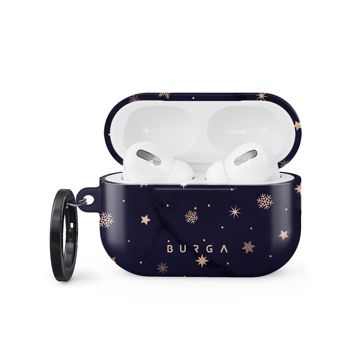 Classical royal blue and golden colors combine in a pretty star pattern of our Midnight Kiss Apple Airpods Pro 2 case cover. Protect your Airpods Pro 2 with a snug fit of a magical star design that can also keep them safe from falls and scratches. Our case fits perfectly snug around Apple Airpods Pro 2 . “Like a glove!” one might say. And it won’t disrupt the wireless charging capabilities of the newer model. There’s even an LED light indicator to prove it (don’t worry, wired charging still works, too). When fitted, the BURGA case will protect the delicate Apple Airpods Pro 2 case beneath it from scratches, bumps, and drops while remaining scratch-free itself. Our signature design pattern prints are High Quality, and will never peel or fade away- thanks to our unique printing technology. And finally, a handy carabiner is there to make your life easier and more convenient: just snap it around your keys or belt loop and tackle the day head-on. Your music is right there by your side when you need it.