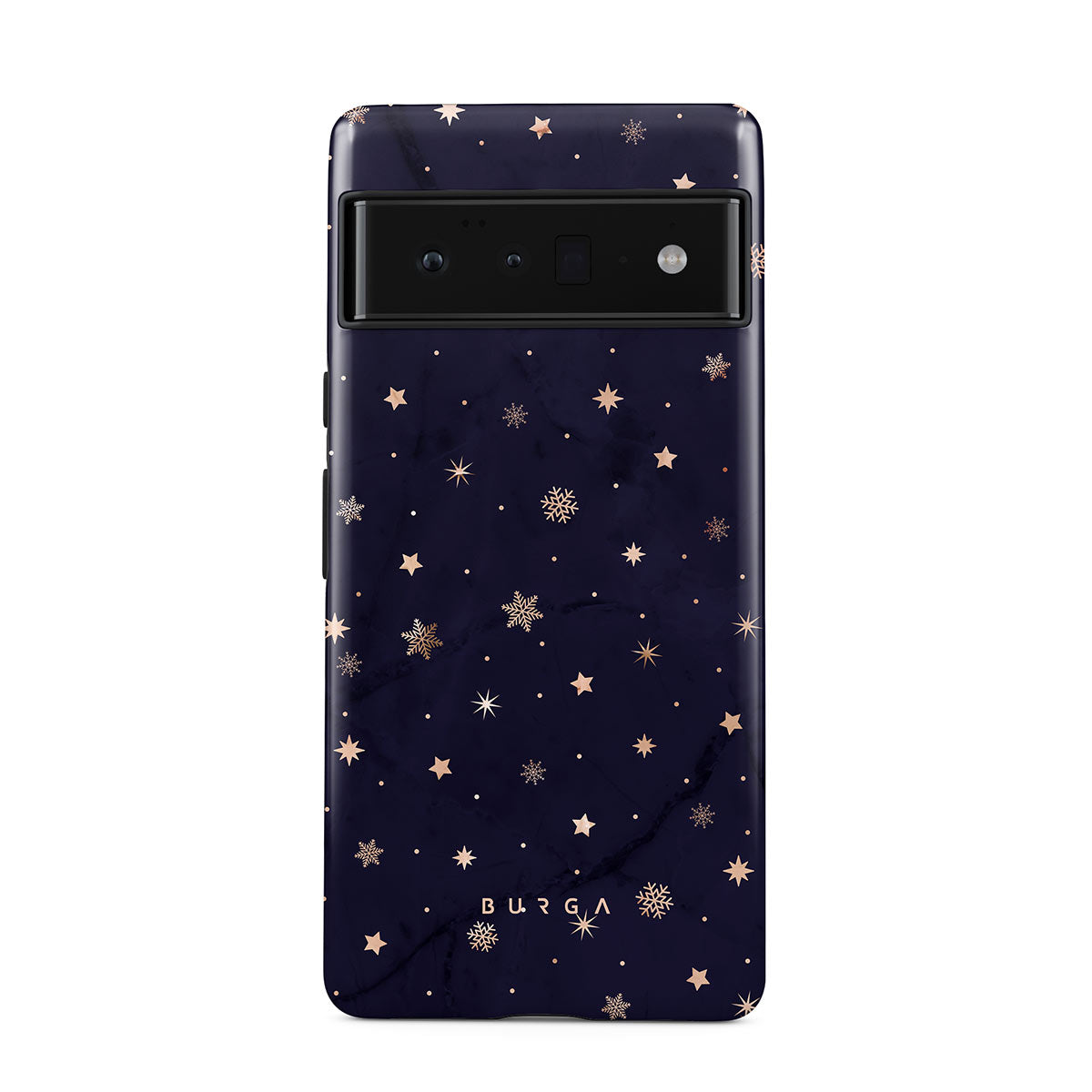 With a dreamy combination of dark blue and golden colors in the pretty star pattern found in our Midnight Kiss Google Pixel 6 Pro phone case, you can protect your phone and add a magical feel to it just in one go.