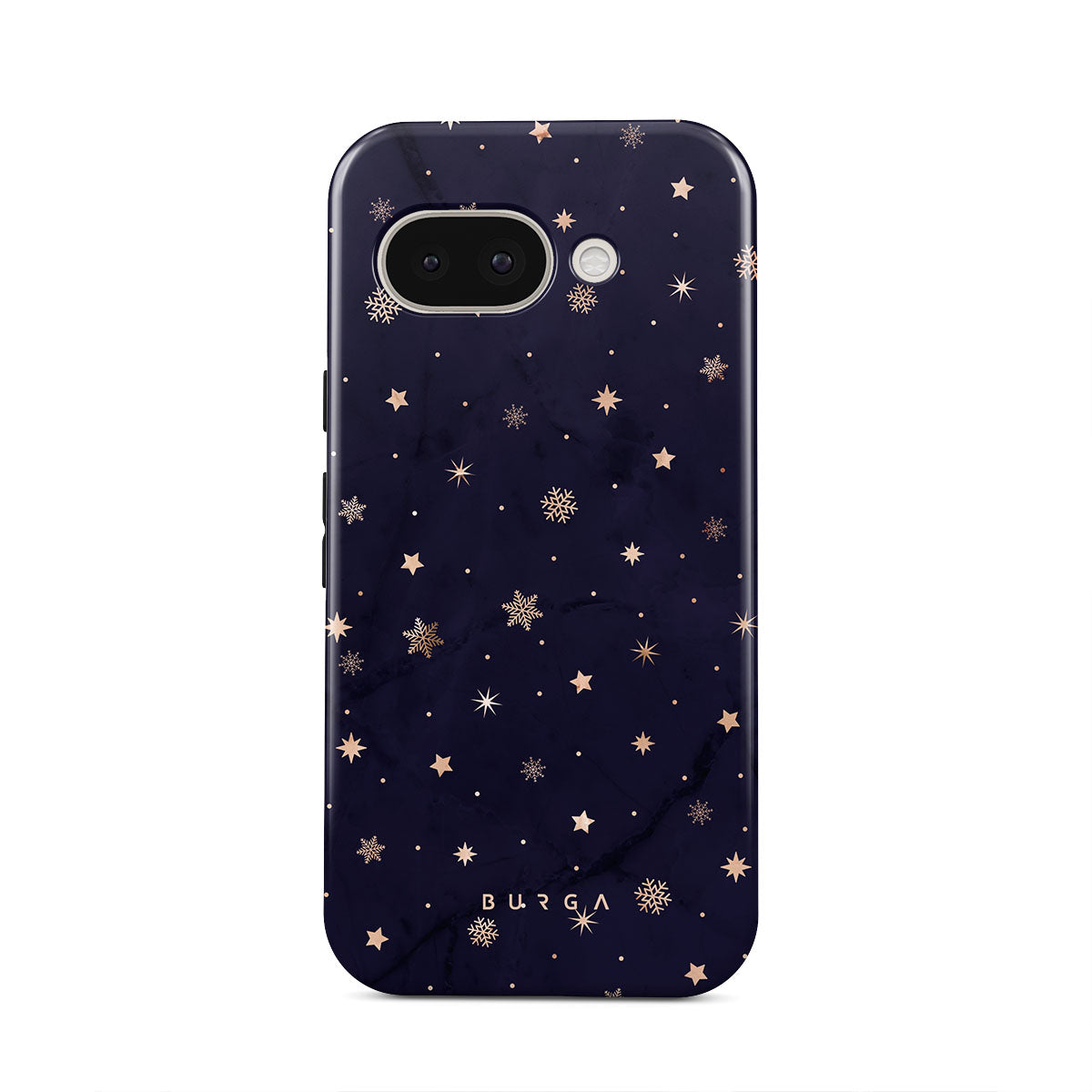 With a dreamy combination of dark blue and golden colors in the pretty star pattern found in our Midnight Kiss Google Pixel 9a phone case, you can protect your phone and add a magical feel to it just in one go.