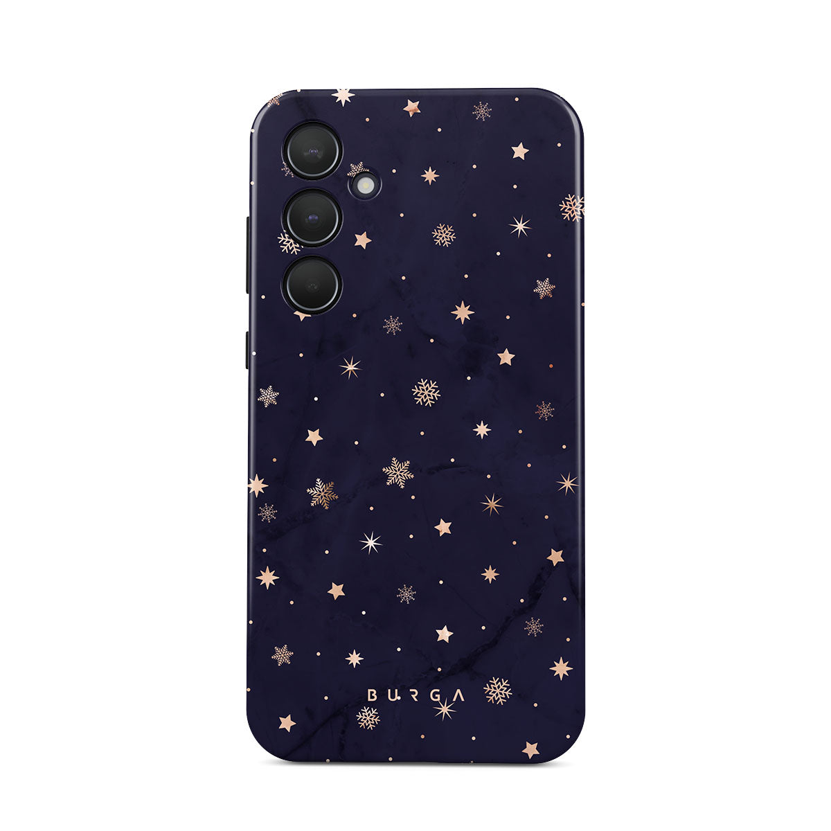 With a dreamy combination of dark blue and golden colors in the pretty star pattern found in our Midnight Kiss Samsung Galaxy A51 phone case, you can protect your phone and add a magical feel to it just in one go.