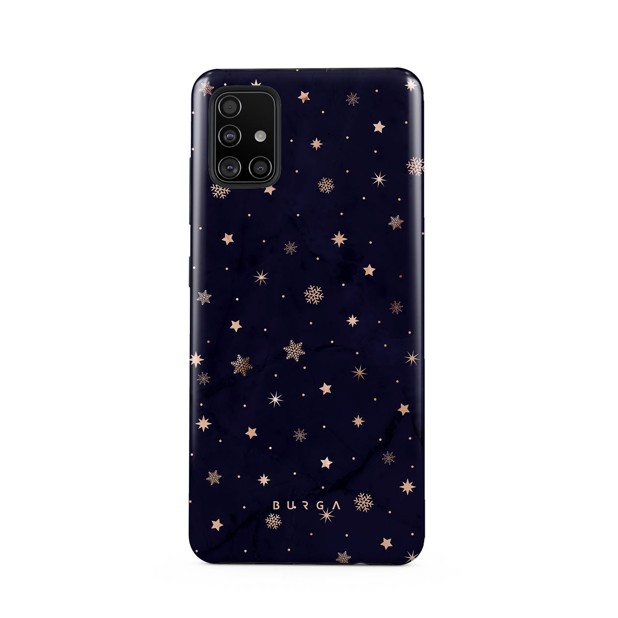 With a dreamy combination of dark blue and golden colors in the pretty star pattern found in our Midnight Kiss Samsung Galaxy A51 phone case, you can protect your phone and add a magical feel to it just in one go.