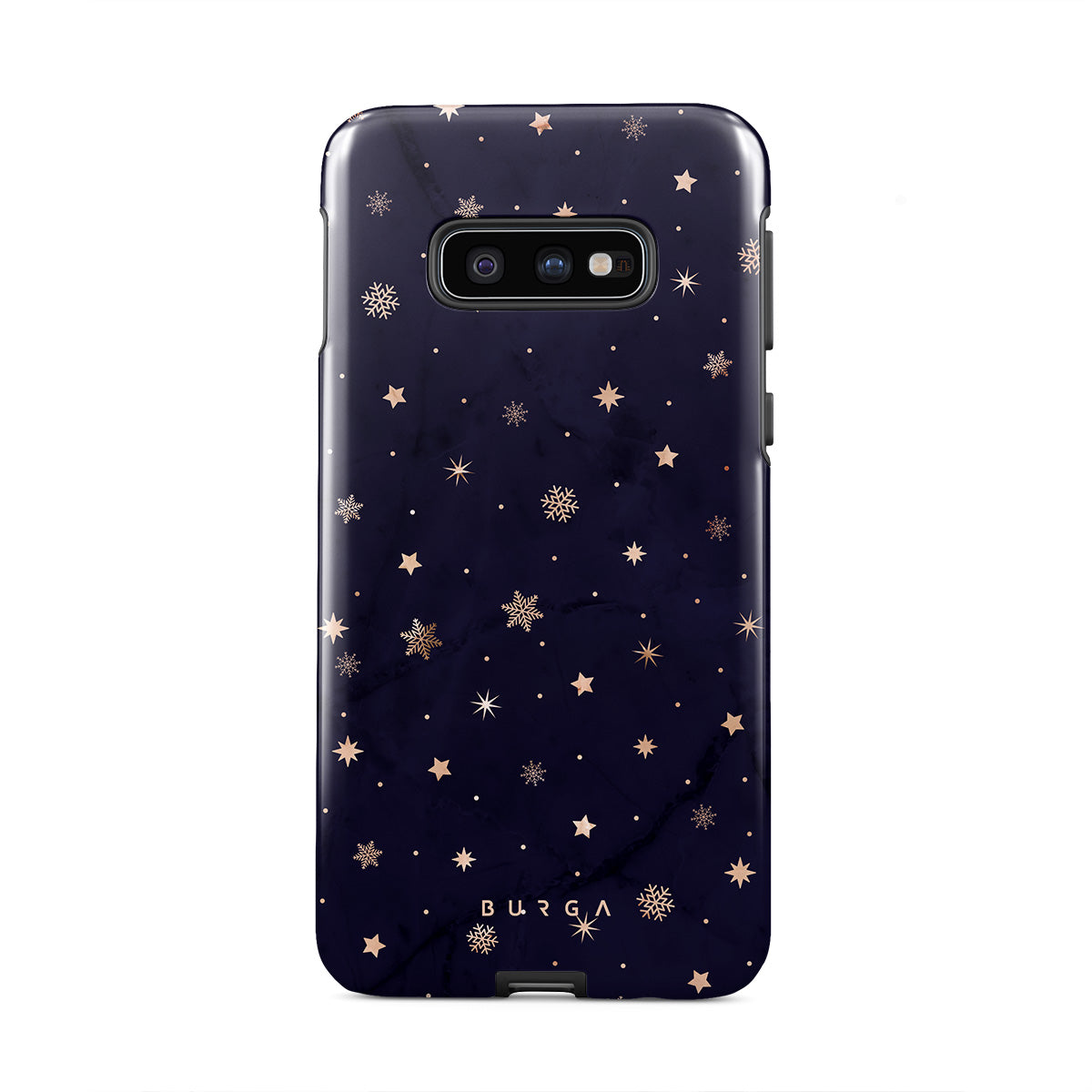 With a dreamy combination of dark blue and golden colors in the pretty star pattern found in our Midnight Kiss Samsung Galaxy S10E phone case, you can protect your phone and add a magical feel to it just in one go.