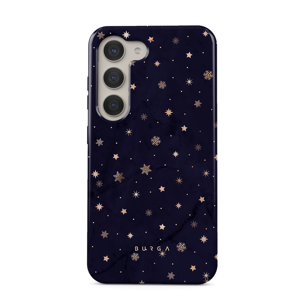 With a dreamy combination of dark blue and golden colors in the pretty star pattern found in our Midnight Kiss Samsung Galaxy S23 phone case, you can protect your phone and add a magical feel to it just in one go.