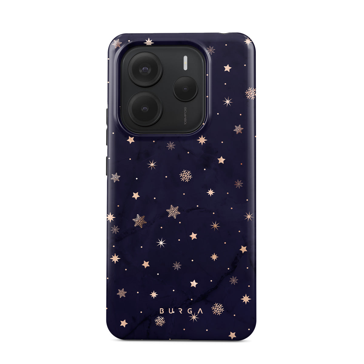 With a dreamy combination of dark blue and golden colors in the pretty star pattern found in our Midnight Kiss Xiaomi Redmi Note 14 5G phone case, you can protect your phone and add a magical feel to it just in one go.