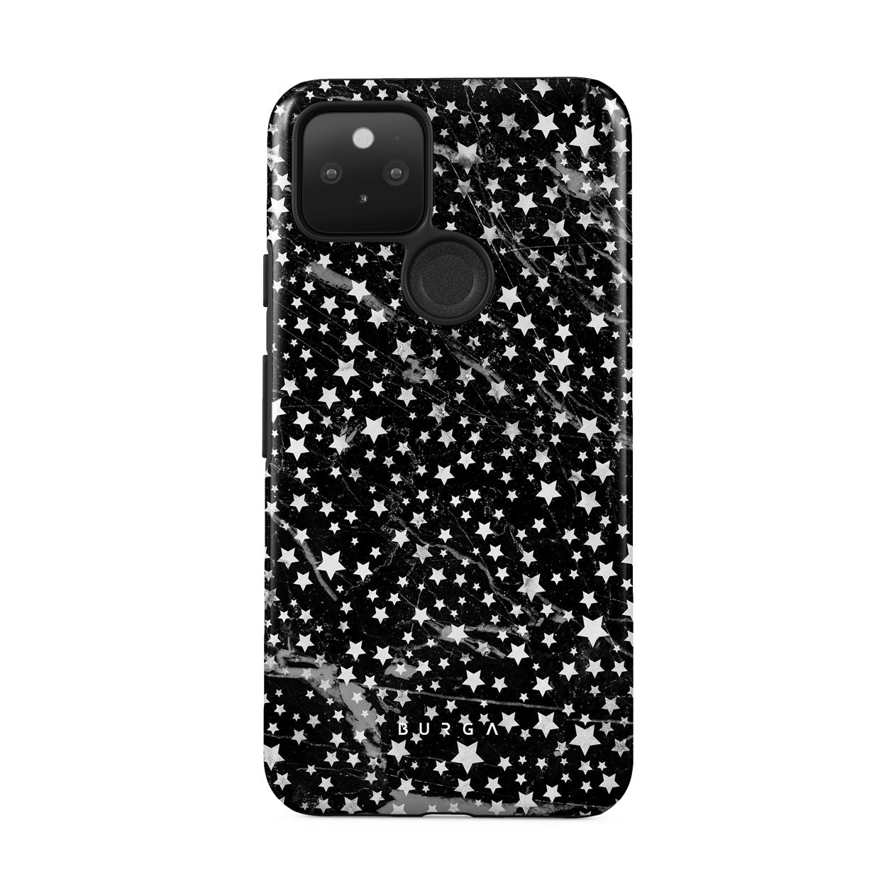 Google Pixel 5 phone case is inspired by the sky above us. Here the charming star pattern meets with a trendy black and white marble. Add the unique combination to your wardrobe and transform your protective phone case into a fashion accessory.