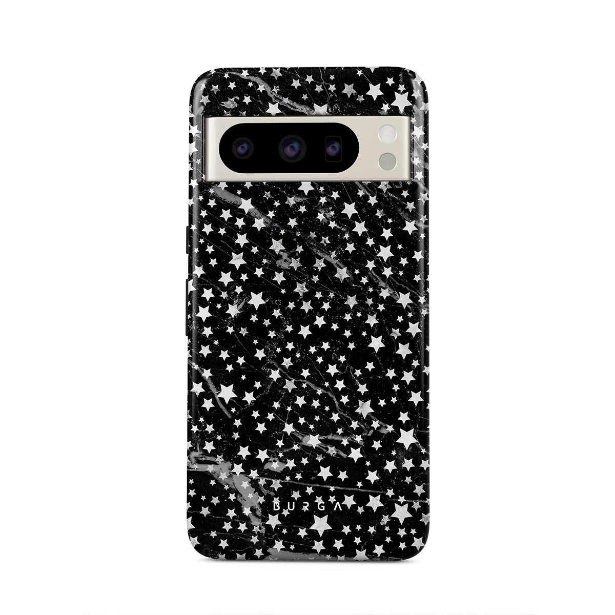 Google Pixel 8 Pro phone case is inspired by the sky above us. Here the charming star pattern meets with a trendy black and white marble. Add the unique combination to your wardrobe and transform your protective phone case into a fashion accessory.