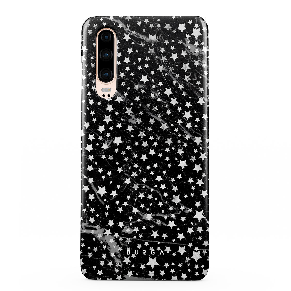 Huawei P30 phone case is inspired by the sky above us. Here the charming star pattern meets with a trendy black and white marble. Add the unique combination to your wardrobe and transform your protective phone case into a fashion accessory.