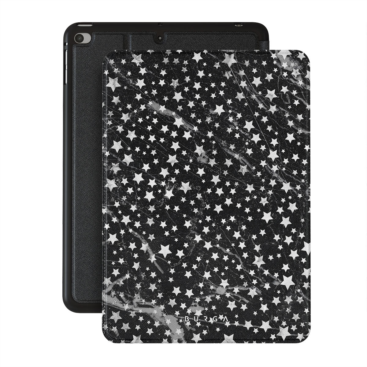 Dark, endless with flickering stars, the Starry Night iPad Mini 7.9 (5th Gen) folio case is inspired by the sky above us. Here the charming star pattern meets with a trendy black and white marble. Add the unique combination to your wardrobe and transform your protective iPad case cover into a fashion accessory.