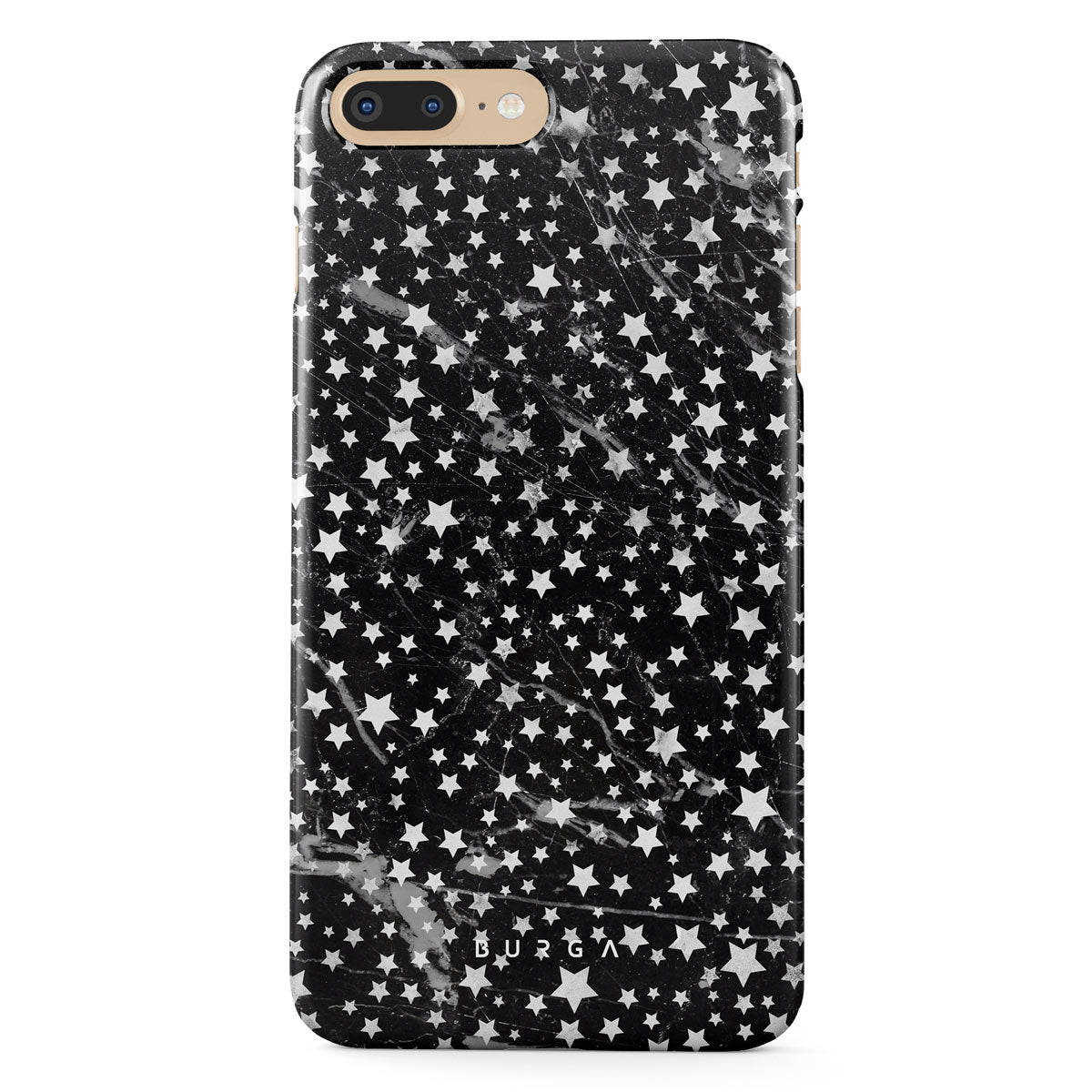 iPhone 7 Plus 8 Plus phone case is inspired by the sky above us. Here the charming star pattern meets with a trendy black and white marble. Add the unique combination to your wardrobe and transform your protective phone case into a fashion accessory.
